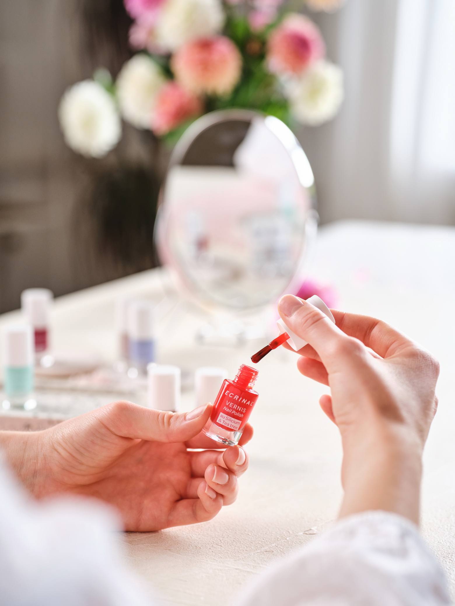 Nova linija barvnih lakov Ecrinal se s svojo formulo vrača k naravnim sestavinam. Lak sestavlja do 76,5 % naravnih sestavin, kar 83 % jih je rastlinskega izvora. Ne vsebuje kemikalij (toluena, formaldehida, kafre, ksilena, ftalatov, parabenov, benzofenona-1, stirena in formaldehidne smole). Zasnovan je na osnovi olja čajevca ter organskega silicija, ki pomaga izboljšati kakovost in trdnost nohtov in je tudi sicer prisoten v človeškem telesu. Topila v laku so naravna – iz rastlinskih izvlečkov sladkornega trsa, kasave in koruze. Ta zagotavljajo tekočo teksturo, primerno viskoznost za preprosto nanašanje ter gladek in sijoč zaključek. Nitroceluloza, pridobljena iz bombaža, zagotavlja odpornost. Za krepitev nohtov je dodan tudi patentirani heksanal, ki je bogat s kalcijem in magnezijem.